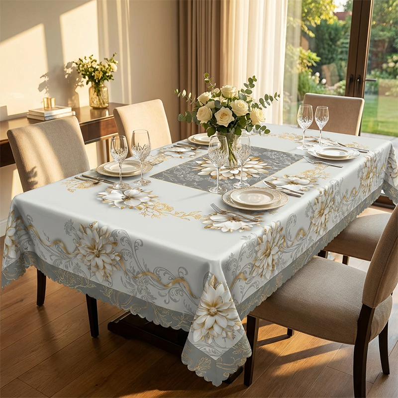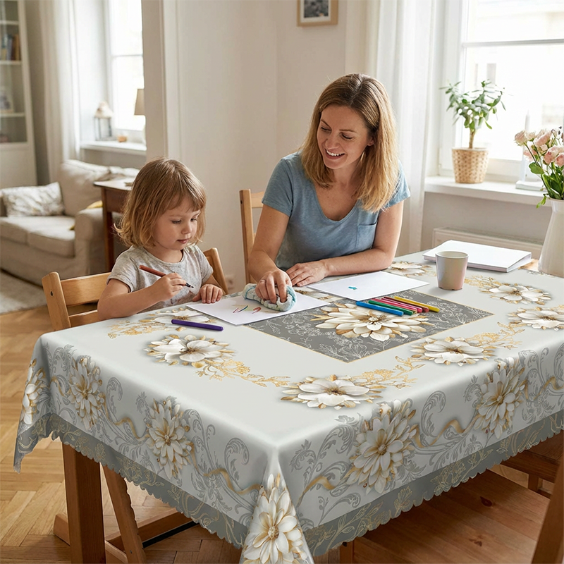 TARTÓS POLISZTER ANYAG – Minőségi poliszterből készült, ez az asztalterítő ránc- és zsugorodásálló. Tartósságot kínál, biztosítva, hogy számos étkezés és ünnepség során is gyönyörű központi eleme maradjon asztalának.