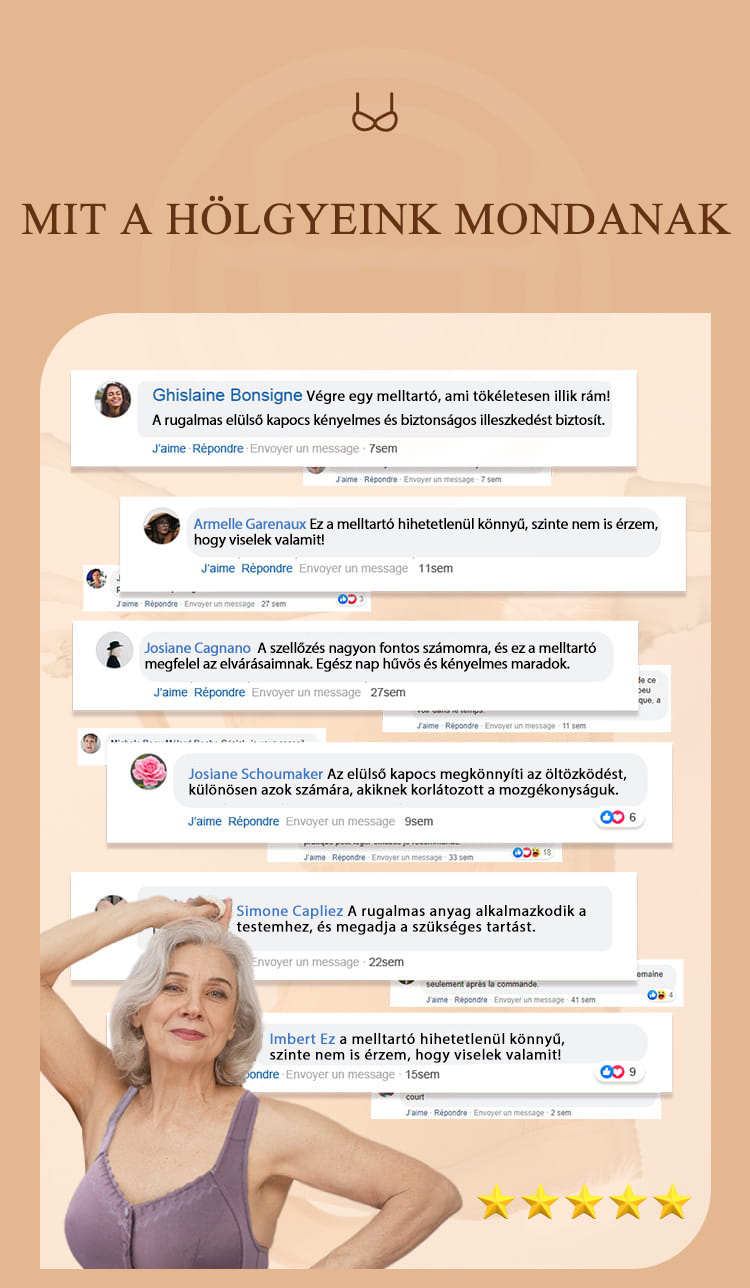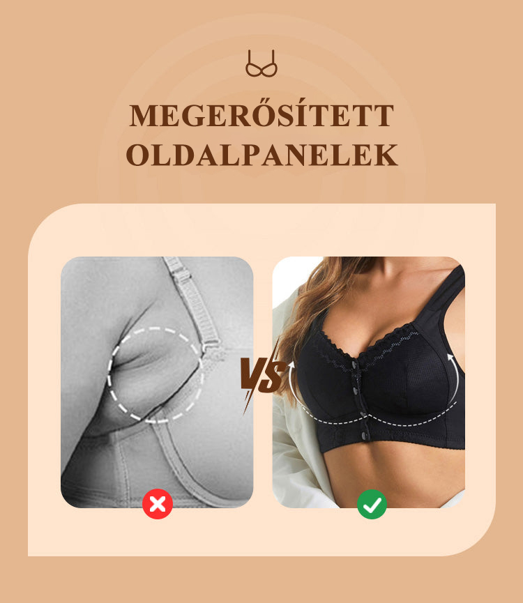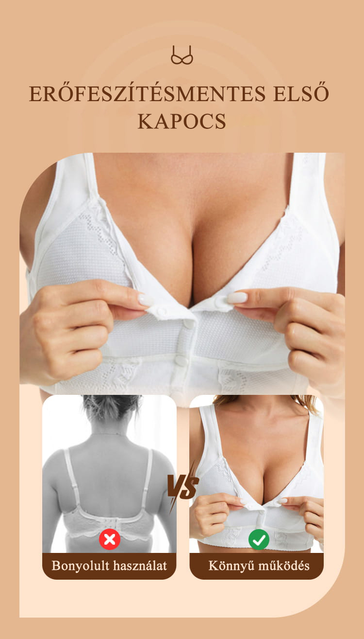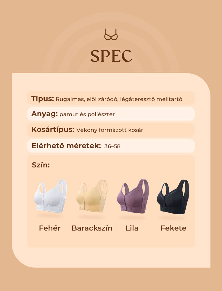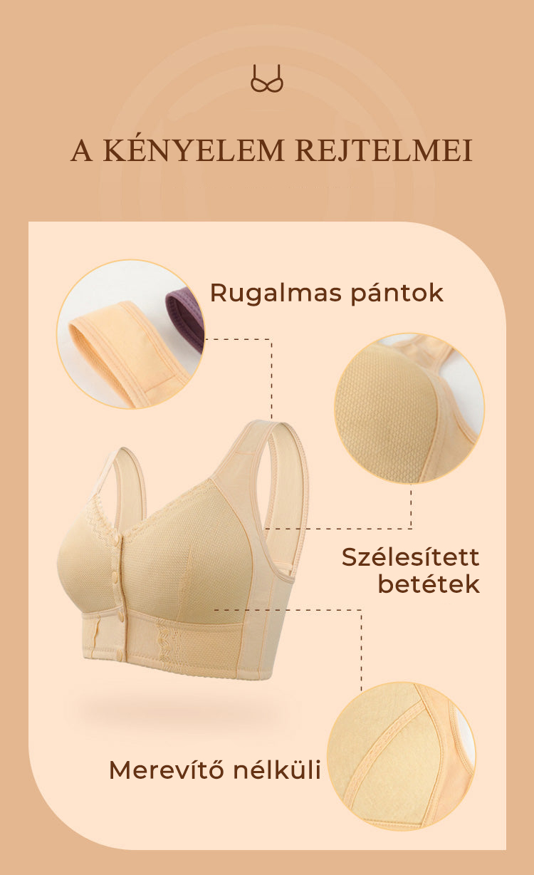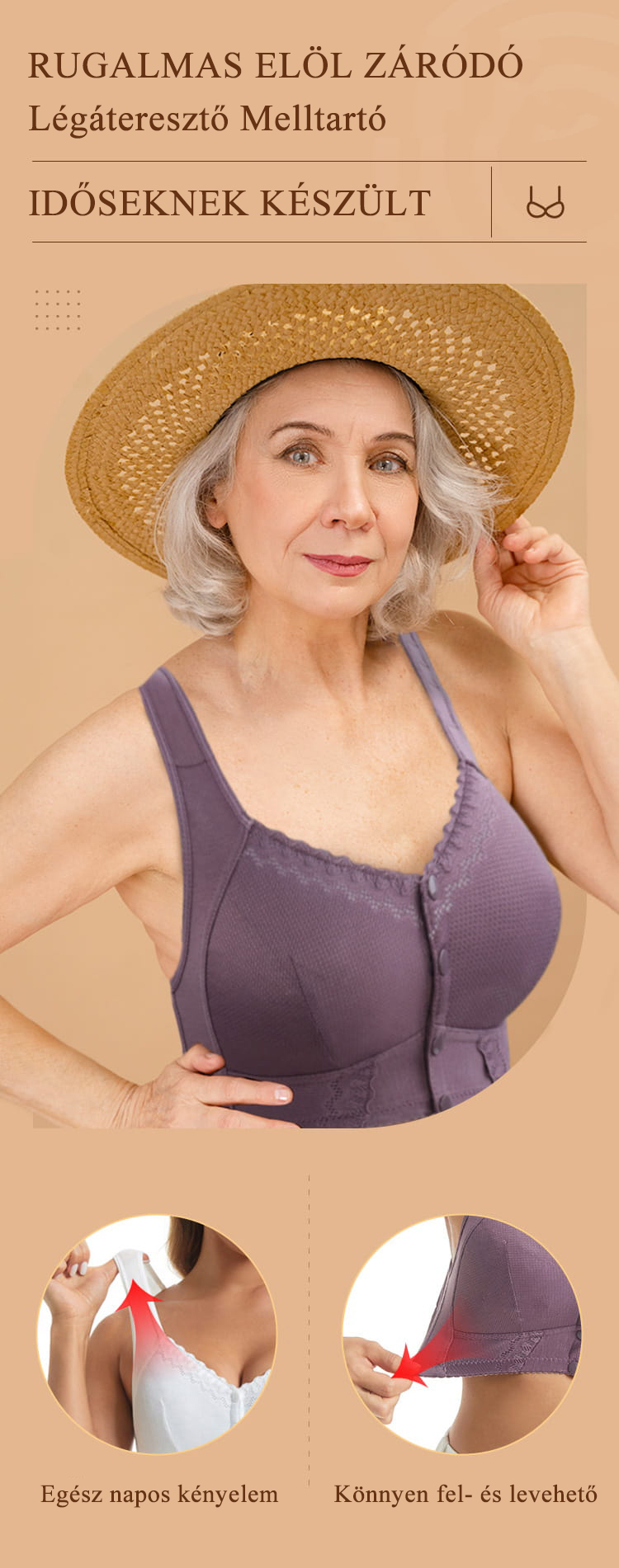 Légáteresztő, kényelmes női melltartó elülső kapoccsal
