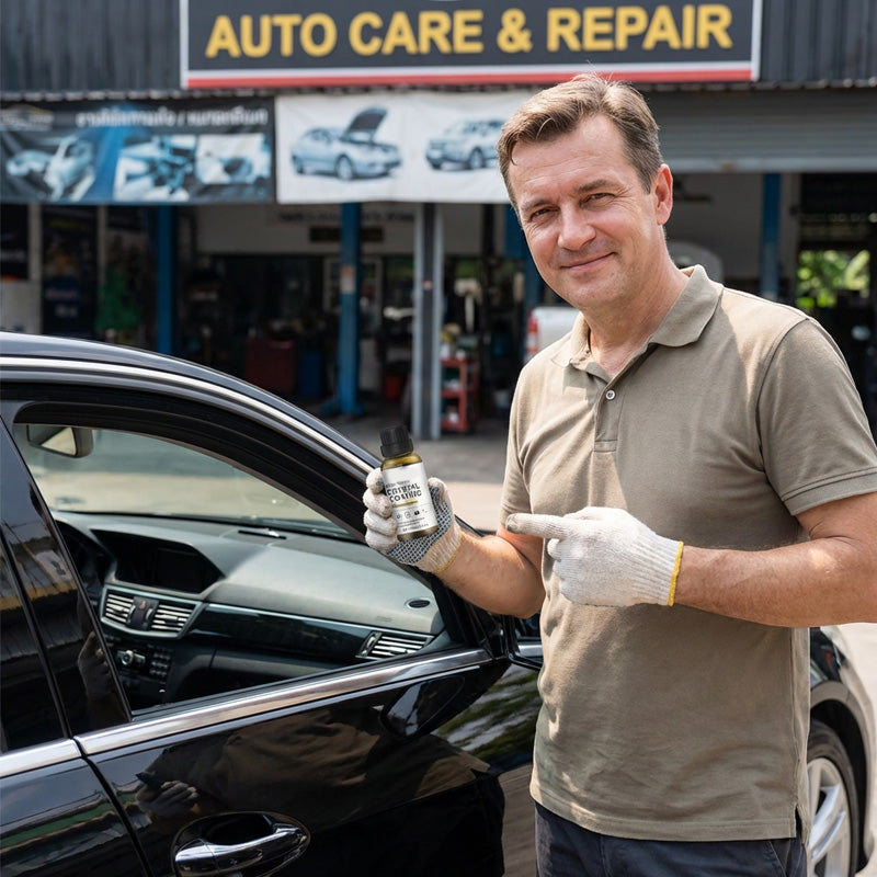 1. lépés: Mossa és szárítsa meg járművét szokás szerint. Fújjon kristálybevonó réteget a felületekre, panelekre vagy kisebb területekre.