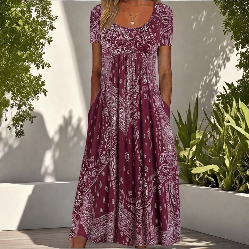SZEMET GYÖNYÖRKÖDTETŐ MINTÁZAT – Az elegáns virágos és geometrikus nyomatok keverékével díszített ruha a művészet vászna, amely felkelti a figyelmet. Az élénk, mégis kifinomult dizájn könnyedén frissen és magával ragadóan tartja stílusát.