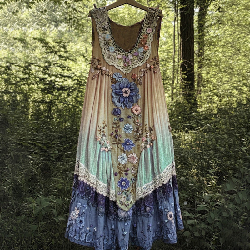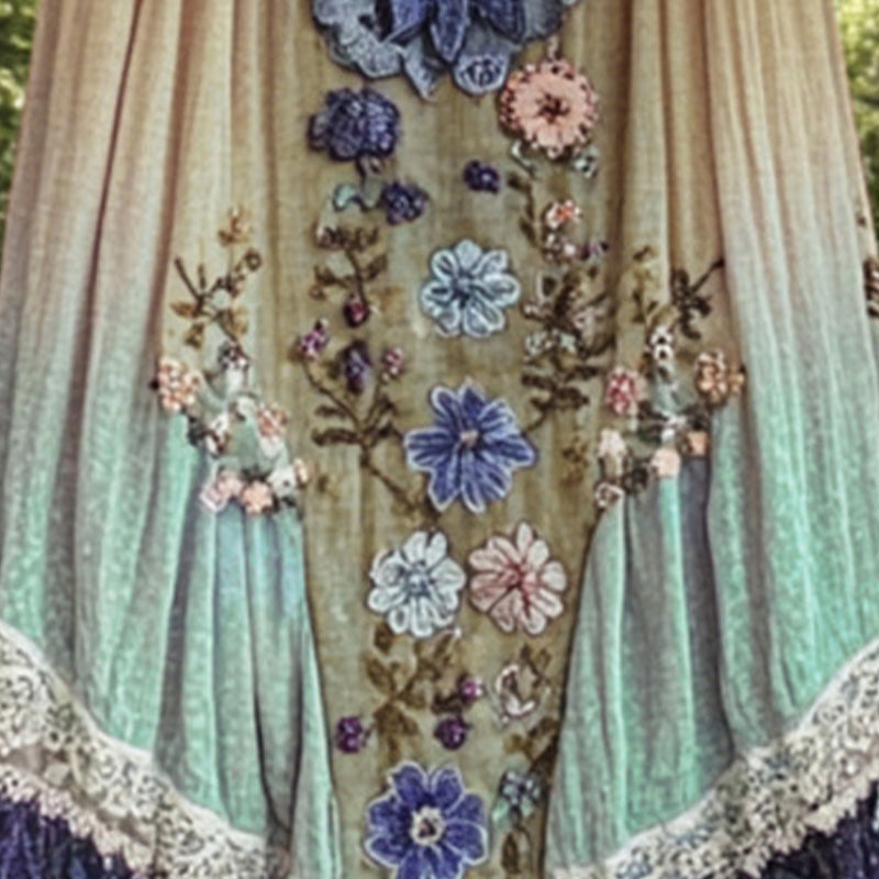 ELEGÁNS 3D VIRÁGNYOMTATÁS - A ruha feltűnő 3D virágmintával rendelkezik, amely mélységet és kifinomultságot kölcsönöz a ruhának. Ez a bonyolult minta titokzatos és elegáns hangulatot teremt, ami kiemeli a ruhát.