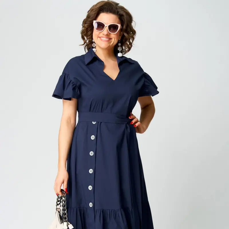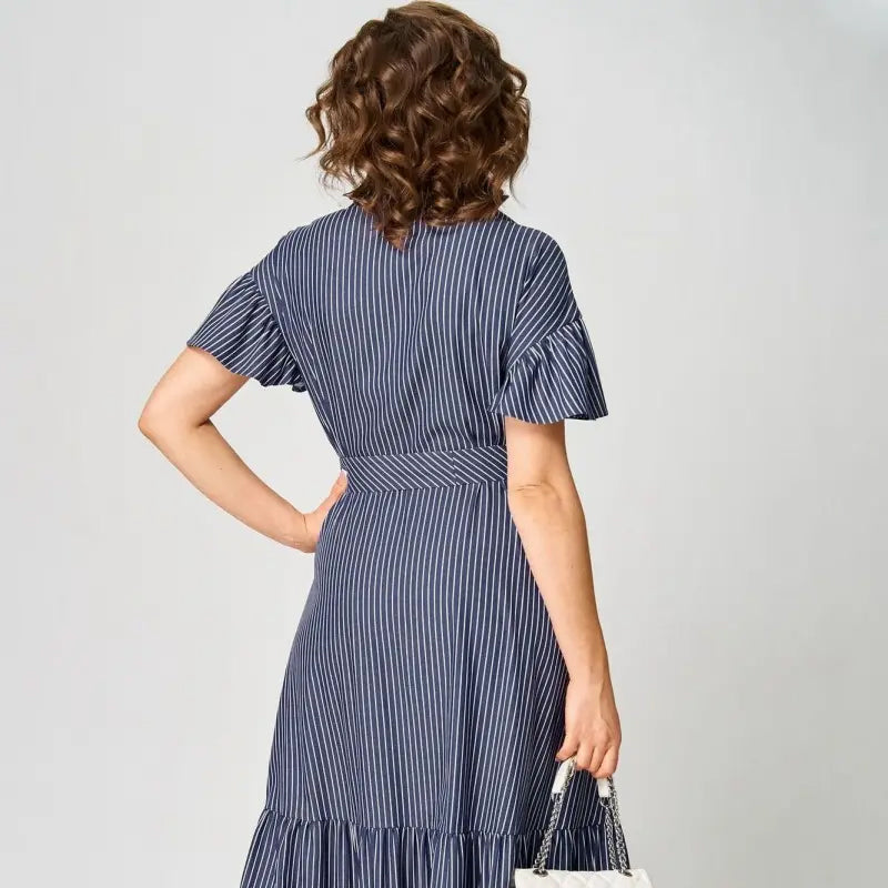 11 x fodros rövid ujjú, övvel ellátott derekú ruha