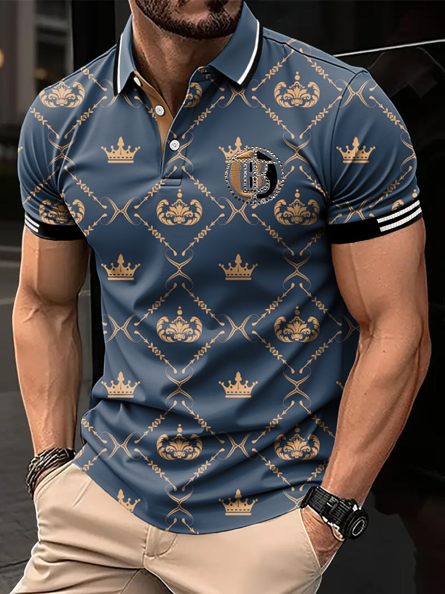 Férfi retro geometriai totem spliced nyomtatott alkalmi üzleti póló