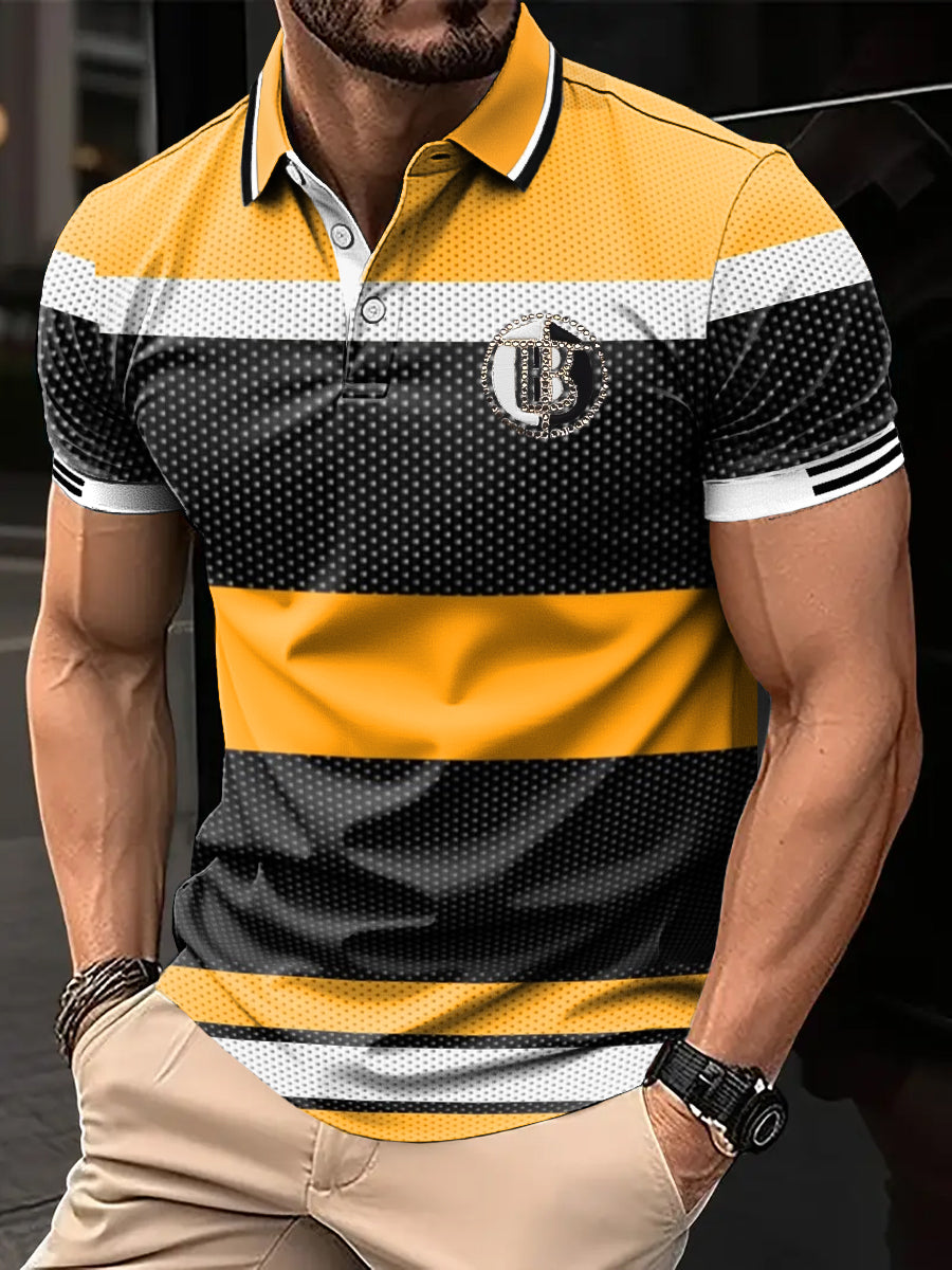 Férfi retro többszínű csík művészeti nyomtatás alkalmi üzleti póló