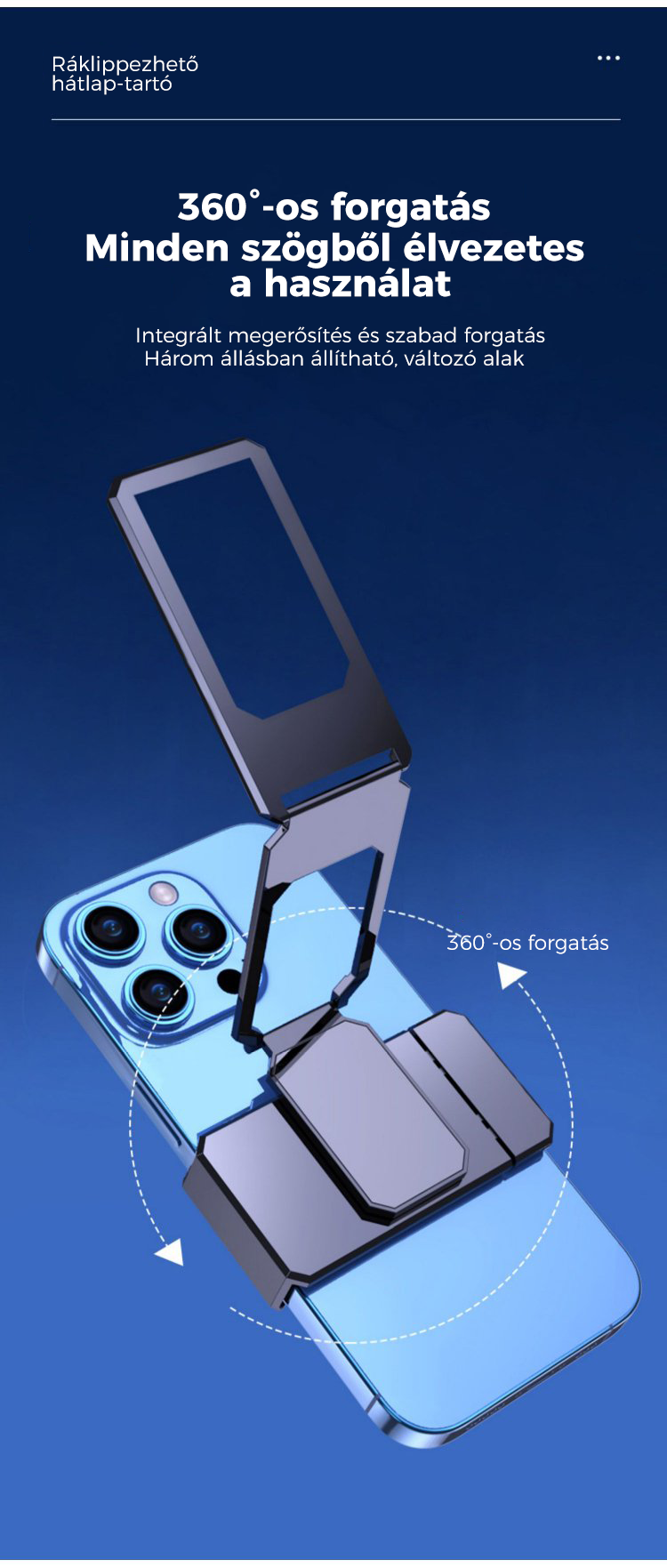 Új és továbbfejlesztett 360 összecsukható klipszes telefontartó