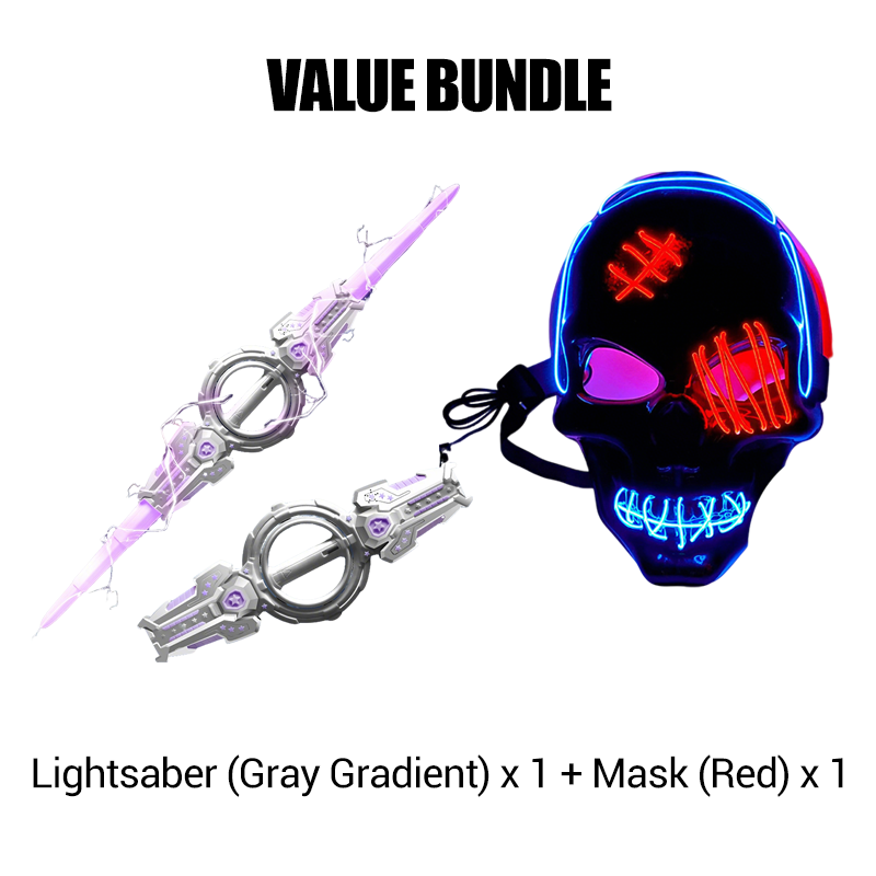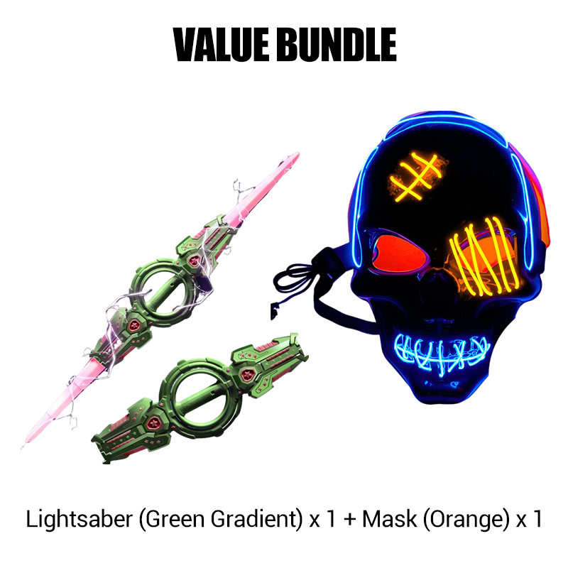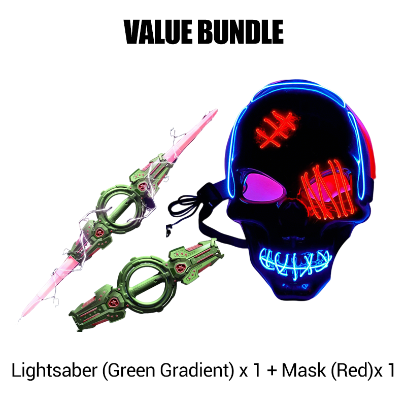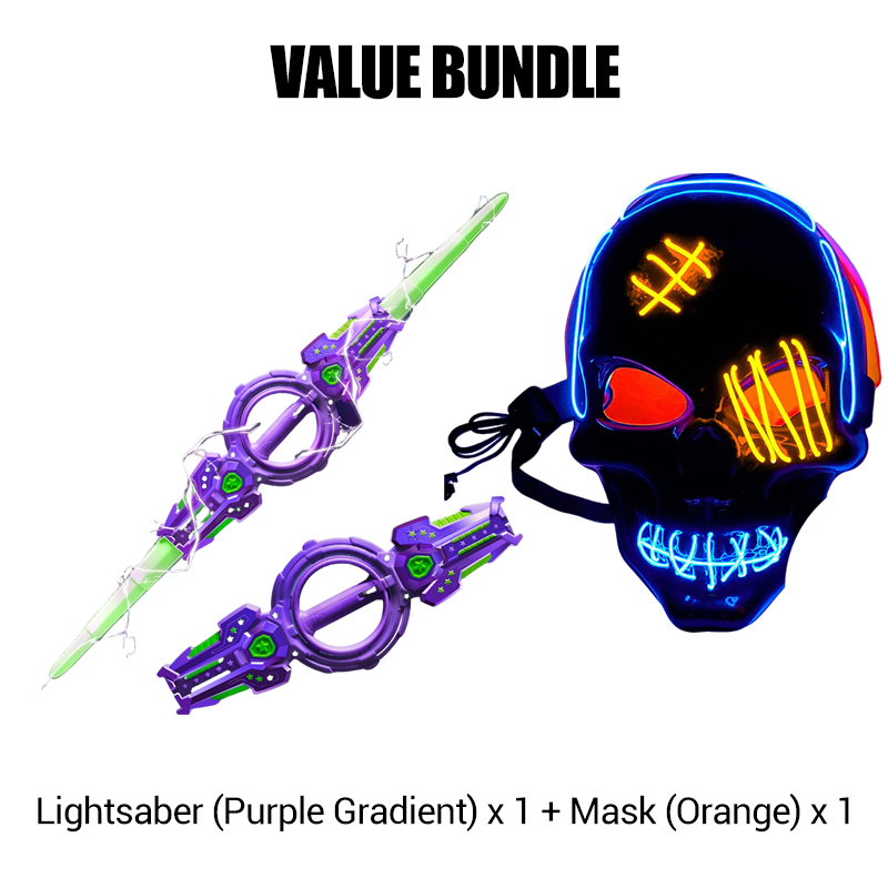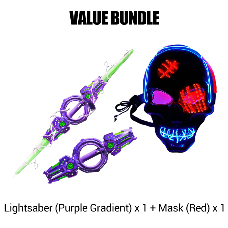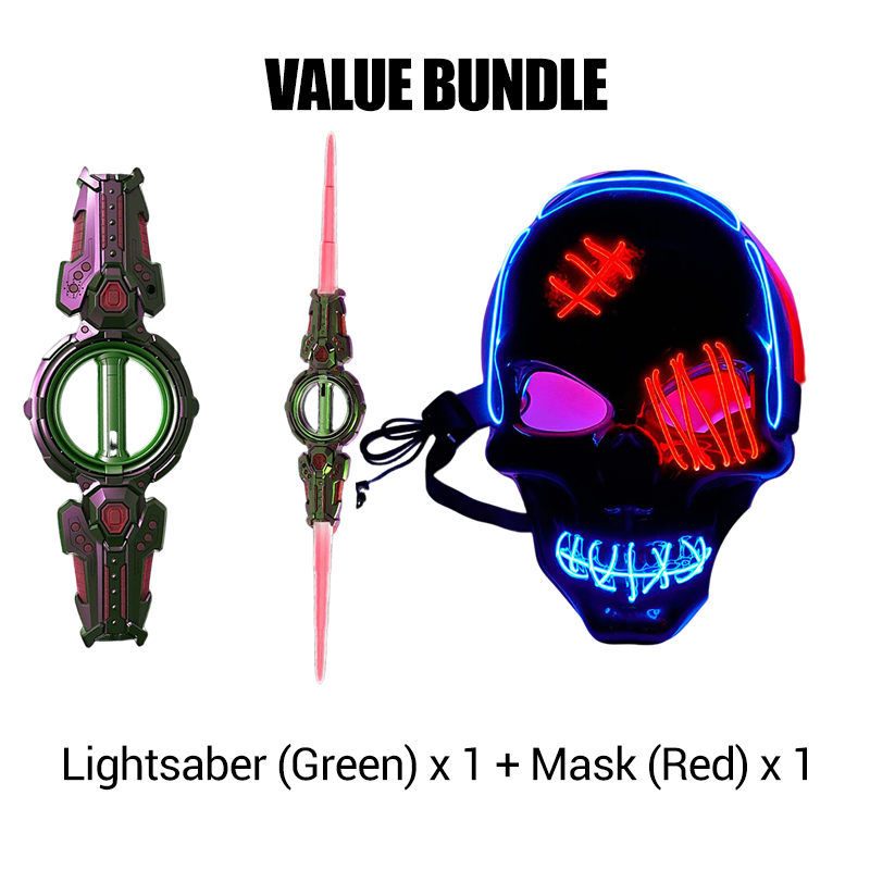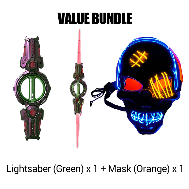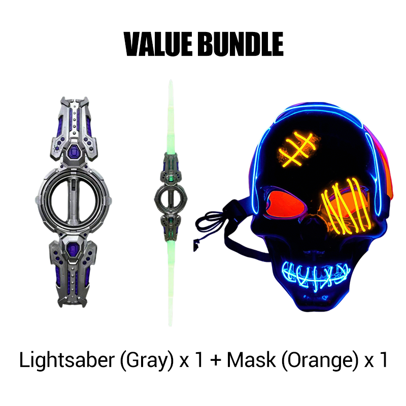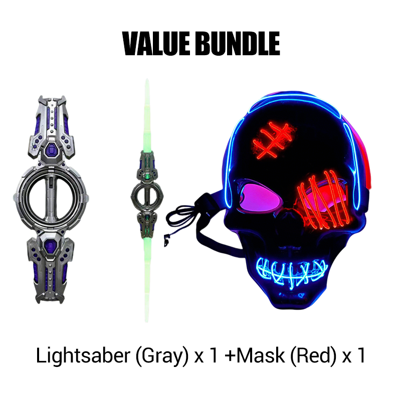 Szín: szürke, zöld, lila, szürke színátmenet, zöld színátmenet, lila színátmenet, fénykard (szürke) + maszk (piros), fénykard (szürke) + maszk (narancssárga), fénykard (zöld) + maszk (piros), fénykard (zöld) + maszk (narancssárga), fénykard (lila) + maszk (piros), fénykard (lila) + maszk (narancssárga), fénykard (szürke színátmenet) + maszk (piros), fénykard (szürke színátmenet) + maszk (narancssárga), fénykard (zöld színátmenet) + maszk (piros), fénykard (zöld színátmenet) + maszk (narancssárga), fénykard (lila színátmenet) + maszk (piros), Világító kard (lila színátmenetes) + maszk (narancssárga)