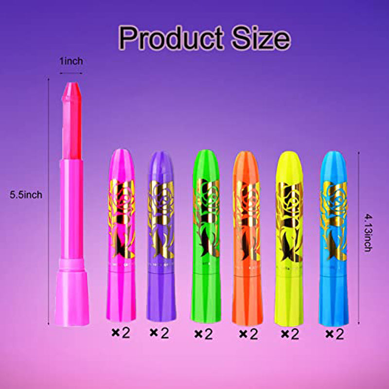 A csomag tartalma: 6 db / 12 db fényes arc- és testfesték szett