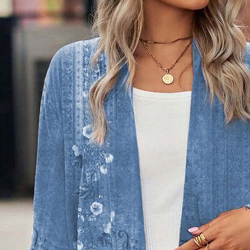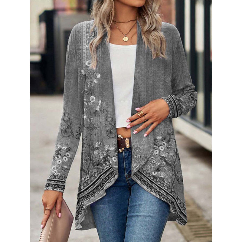 NYITOTT ELŐLAP - Ez a kabát egyszerű, nyitott elülső résszel rendelkezik, gombok és cipzárak nélkül, így könnyed és stílusos megjelenést biztosít. Könnyen viselhető és más ruhákkal is kombinálható, így a virágos mintázat jól érvényesül.