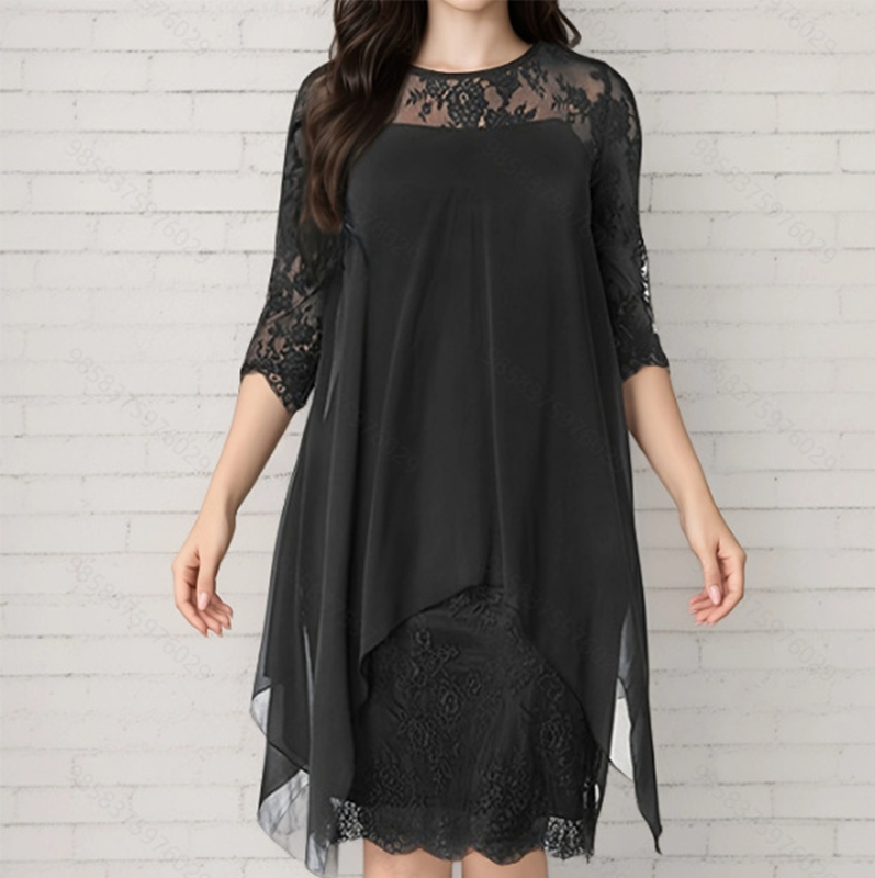ELEGÁNSAN KECSES BEVONAT - Ez a ruha lenyűgöző csipkeborítással rendelkezik, amely kifinomultságot és bájt kölcsönöz. A bonyolult részletek feldobják megjelenését, így tökéletes választás hivatalos eseményekre, partikra vagy különleges alkalmakra.