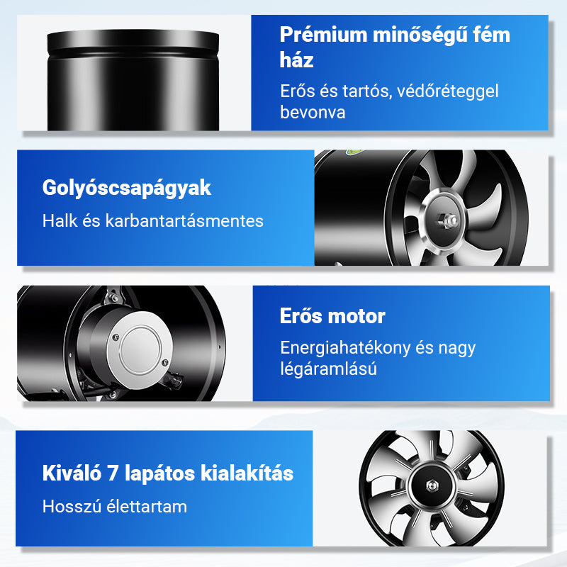 * Megsűrűsödött pengék: Hét megvastagított lapát erősebb és egyenletesebb légmennyiséget biztosít, nem könnyű deformálódni. Stabilan és rezgésmentesen működik, nagy légmennyiséget biztosít, miközben csökkenti a zajt.