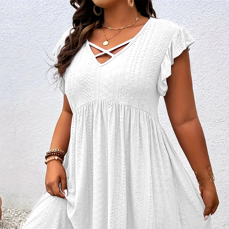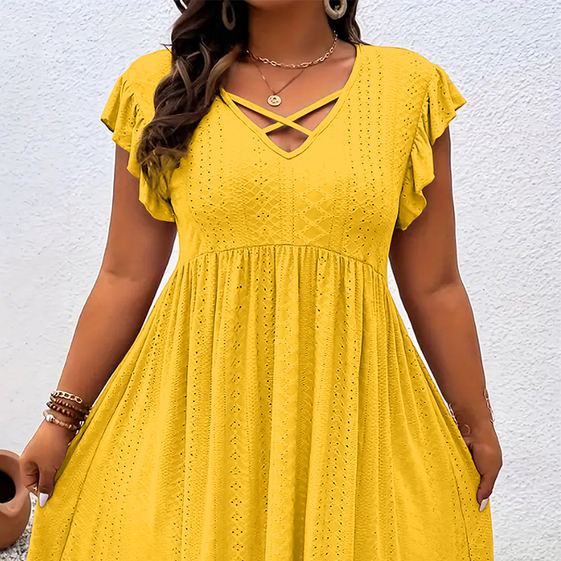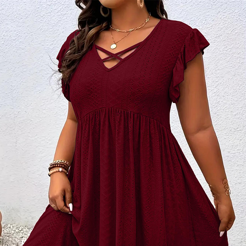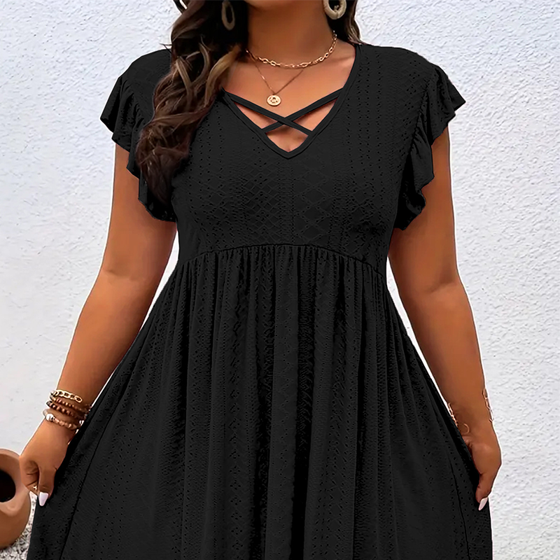 A csomag tartalma: 1* női V-nyakú, fodros szegélyű ruha