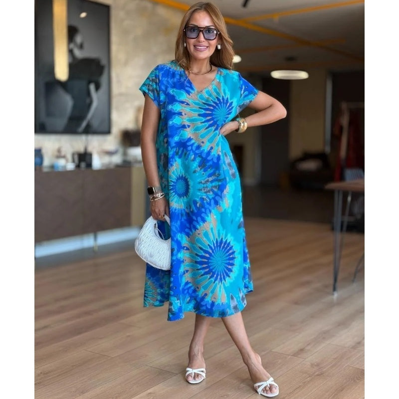 A csomag tartalma: 1*Női alkalmi V-nyakú nyomtatott Maxi ruha