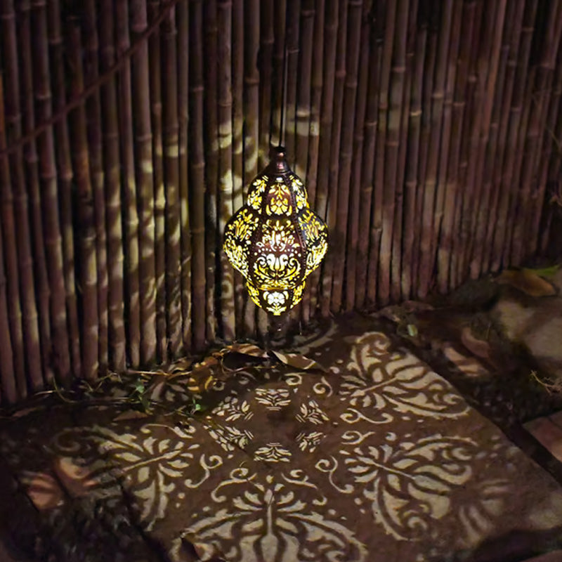 ELEGÁNS ÜREGES KIALAKÍTÁS: Bonyolult kivágott mintákkal rendelkezik, amelyek megvilágításkor varázslatos fénymintákat hoznak létre. A dekoratív fémmunka nappal vizuális élményt nyújt, éjszaka pedig gyönyörű árnyékokat vet a kültéri hangulatvilágításhoz.