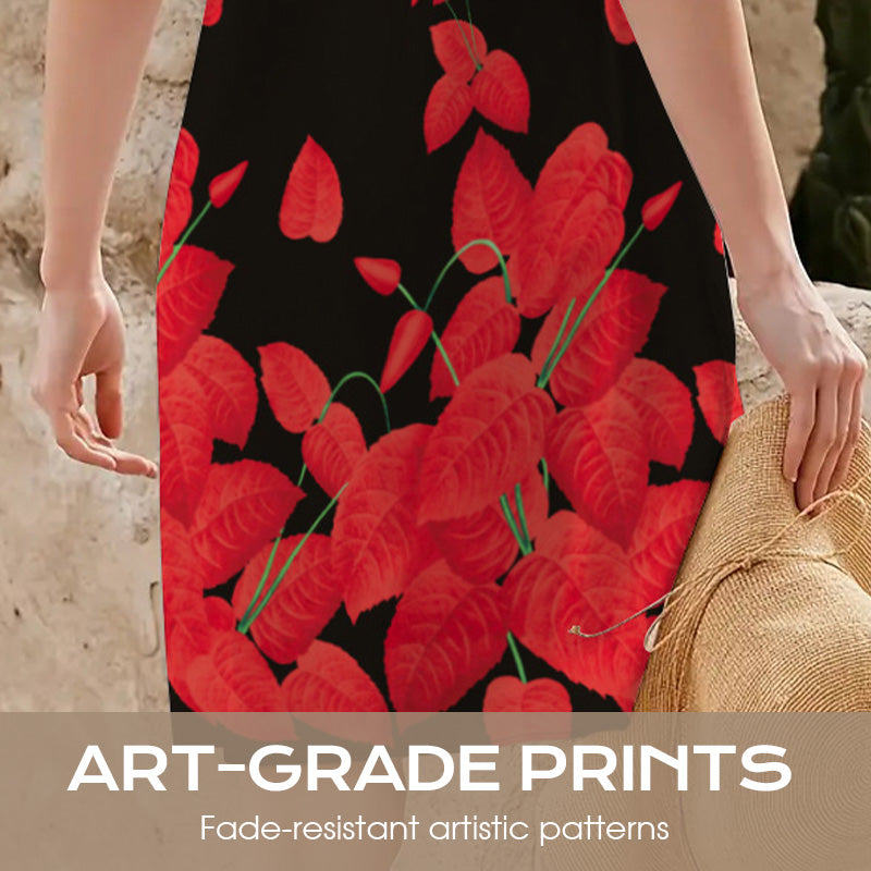 MŰVÉSZETI NYOMTATÁS: Minden ruha gondosan kidolgozott nyomtatással rendelkezik, amely mosás után sem fakul. A minta elhelyezkedése előnyös arányokat biztosít, stratégiai design elemekkel, amelyek karcsúsító hatást keltenek. A tömeggyártott nyomtatással ellentétben ez az egyedi design kiemelkedik, miközben elég sokoldalú ahhoz, hogy több alkalomra is viselhető legyen.
