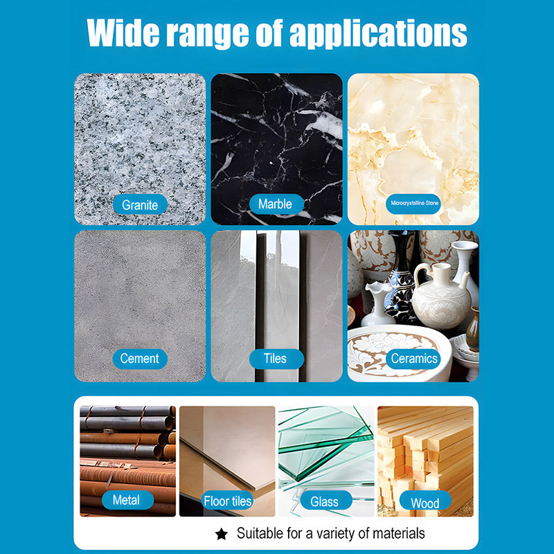 SZÉLES ALKALMAZÁS: Kompatibilis a legkülönbözőbb anyagokkal, beleértve a csempe, kerámia, gránit, márvány, beton, fém, üveg és fa csiszolásához, újrafényezéséhez, élkikészítéshez és géptalanításhoz.