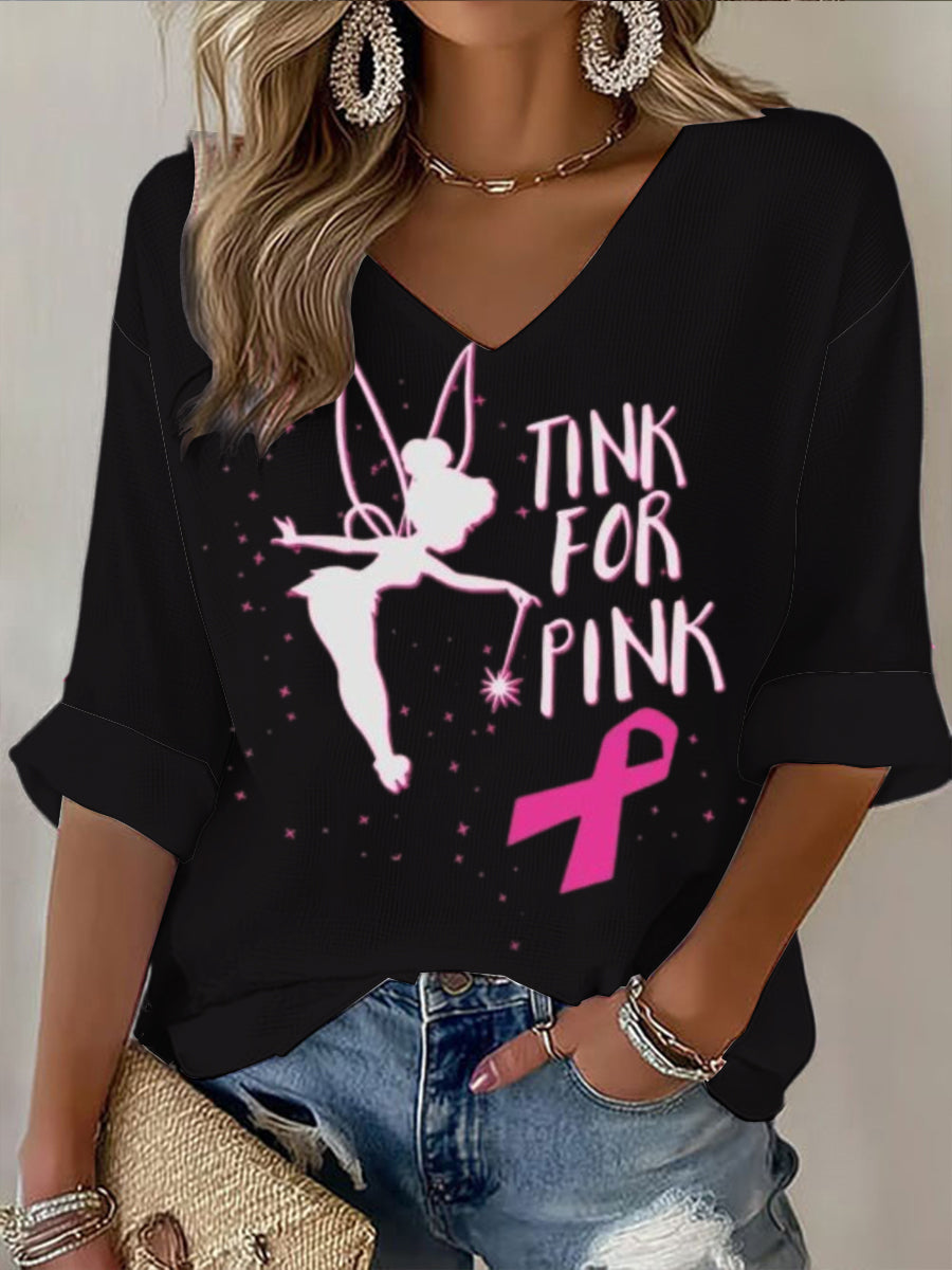 Női fekete szalag nyomtatott v-nyak hosszú ujjú ing