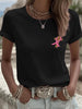 Női minimalista kis címke szalag nyomtatott alkalmi rövid ujjú ing