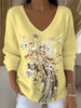 Női páva hímzett v-nyak pulóver