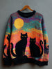 Női retro fekete macska nyomtatás alkalmi pulóver