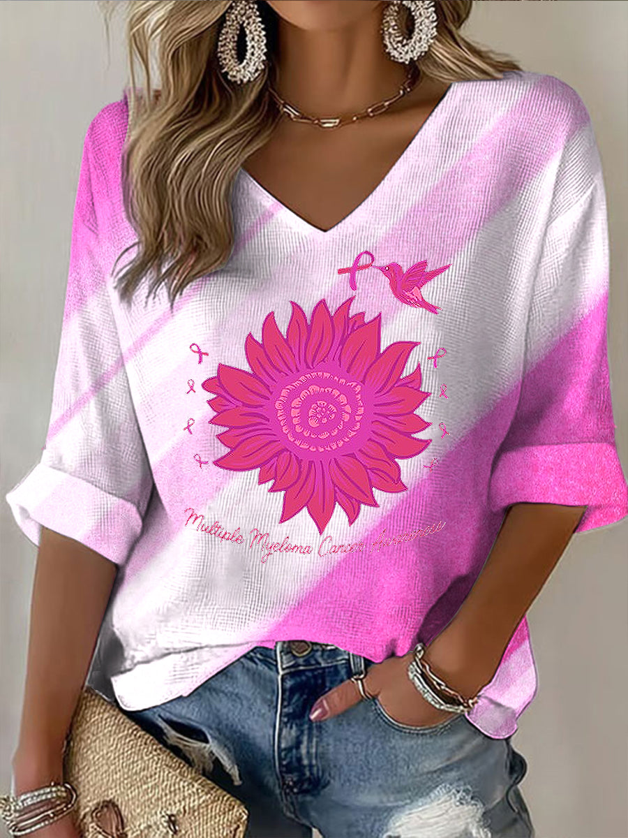 Női rózsaszín virágszalag alkalmi hosszú ujjú póló