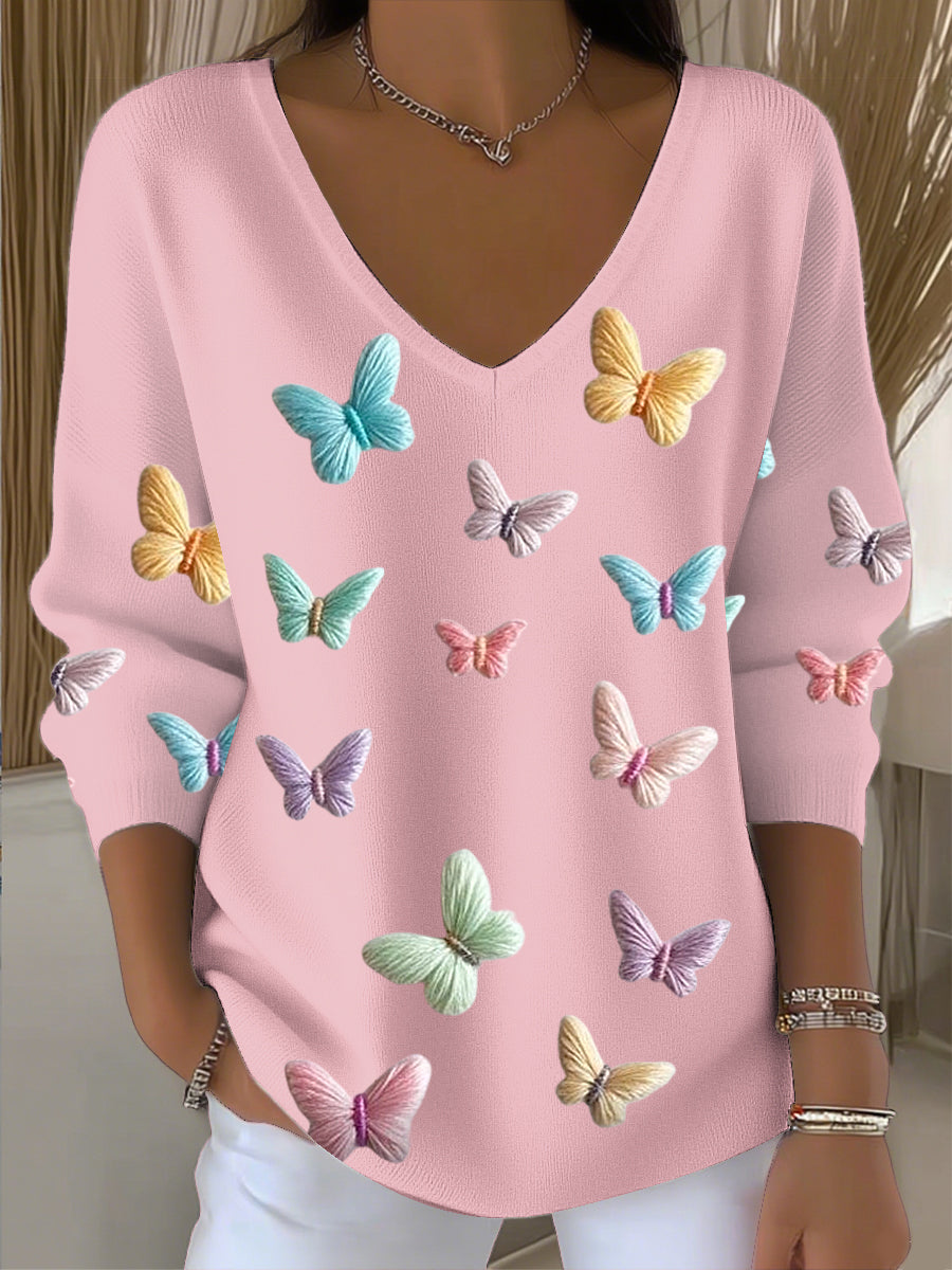 Női színes pillangó v-nyak felső
