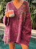 Női vintage etnikai virágos absztrakt nyomtatás v-nyak pulóver