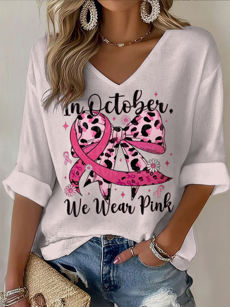 Nők leopárd pillangó mellrák téma alkalmi v-nyak rövid póló