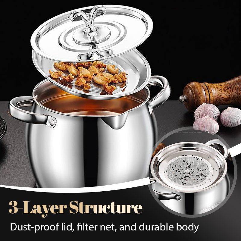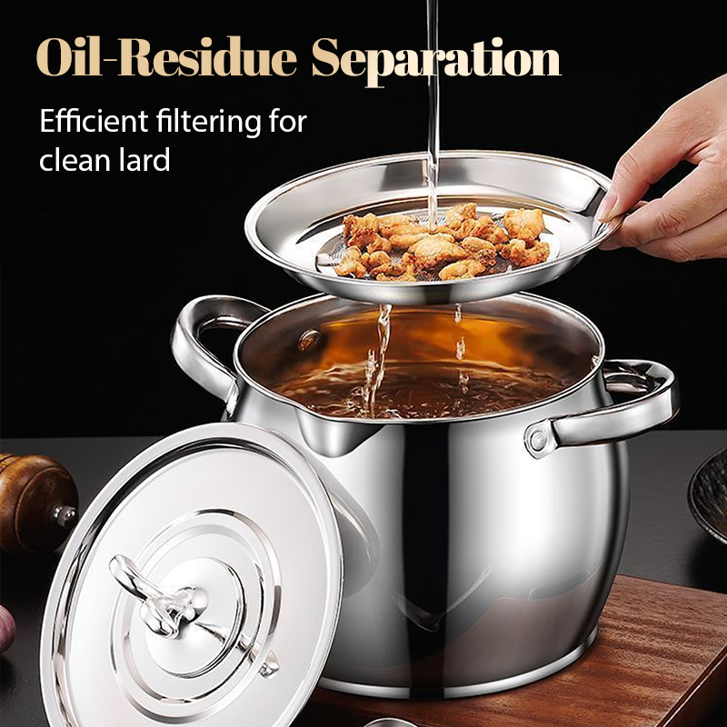 HATÉKONY OLAJMARADÉK ELVÁLASZTÁS: Vastag rozsdamentes acél testtel és finom szűrővel ellátott, ez a zsírkonténer biztosítja az olaj alapos szűrését. Hatékonyan elválasztja az olajmaradékot a kiolvasztás során és után, így minimális erőfeszítéssel tiszta, tiszta zsírt kap.