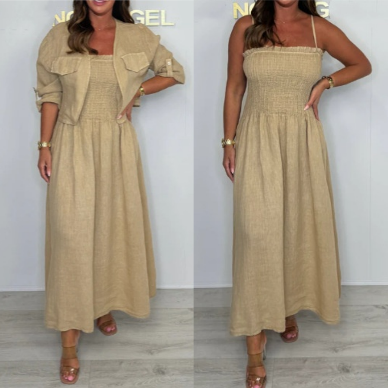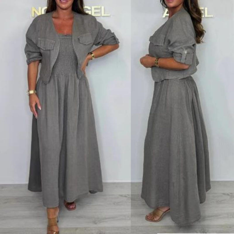 VĂLASZTHATĂ MIX ĂS MATCH STĂLUS - Hozzon lĂ©tre többfĂ©le megjelenĂ©st ezzel az összehangolt kĂ©szlettel, amely egyĂŒtt vagy kĂŒlön-kĂŒlön is mƱködik. A rövid kabĂĄt tökĂ©letesen rĂĄfekszik a spagettipĂĄntos ruhĂĄra, mĂg mindegyik darab könnyedĂ©n pĂĄrosĂthatĂł a meglĂ©vĆ ruhatĂĄraddal a maximĂĄlis öltözĂ©kkombinĂĄciĂłk Ă©rdekĂ©ben.