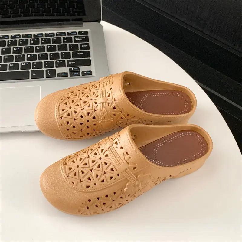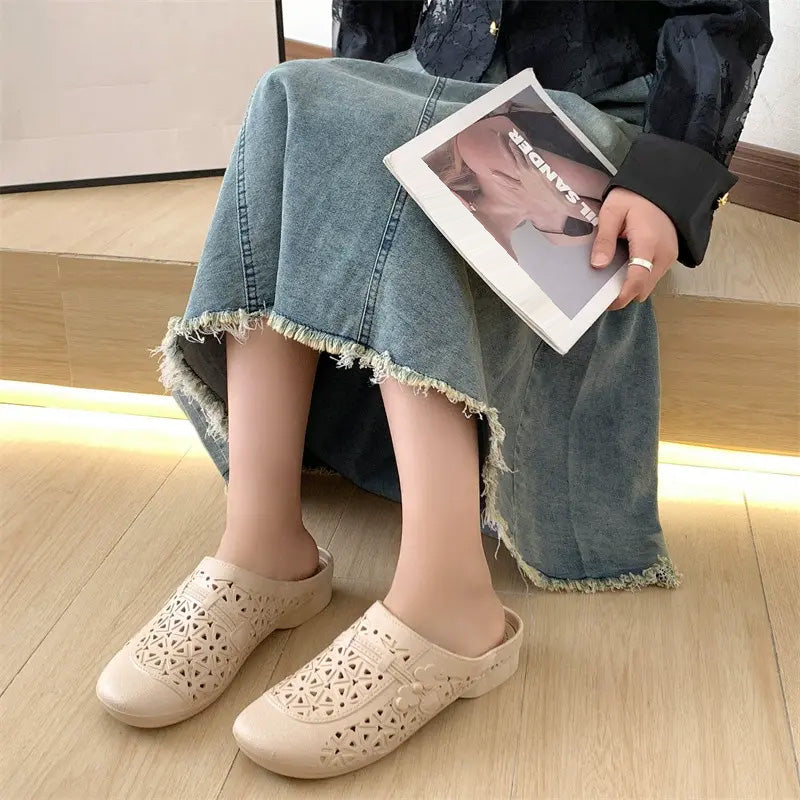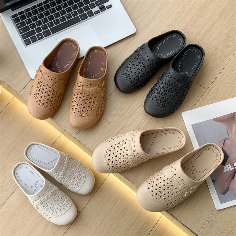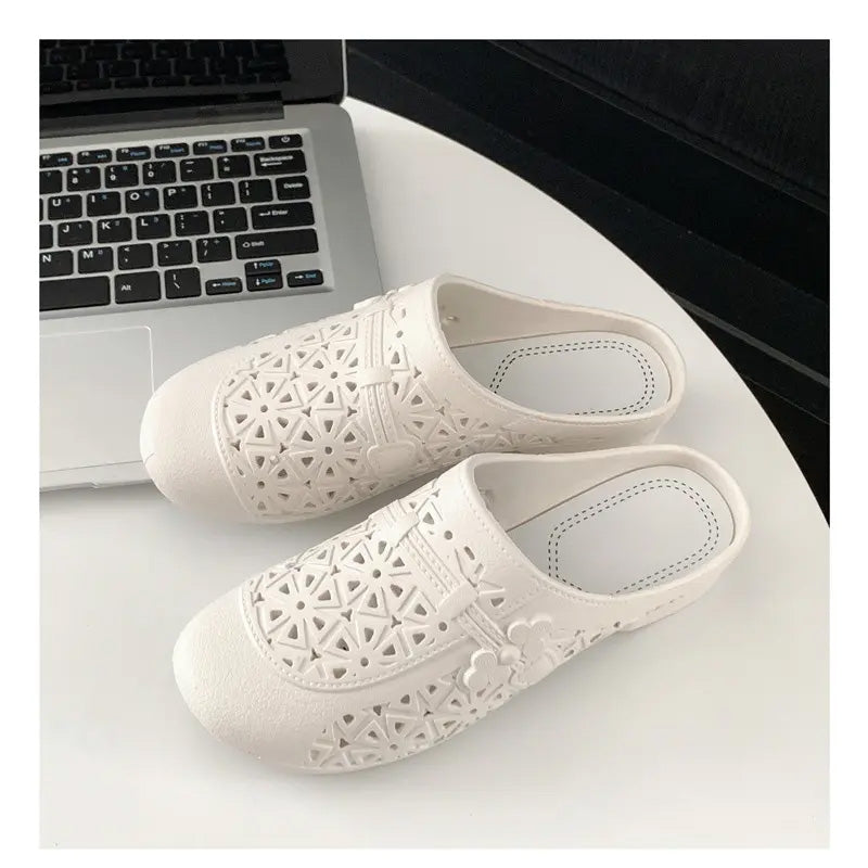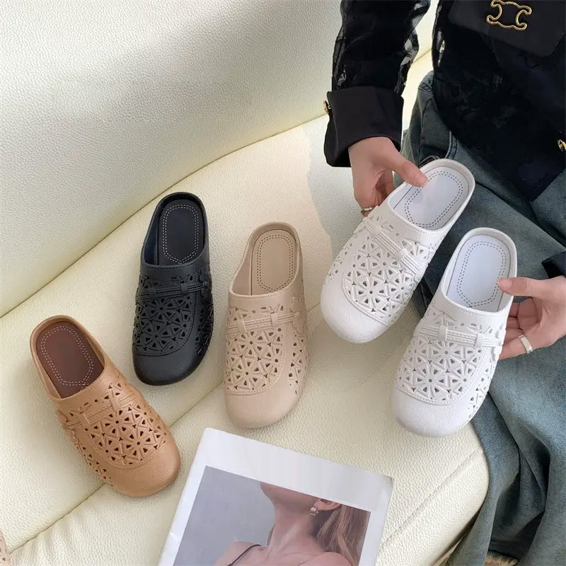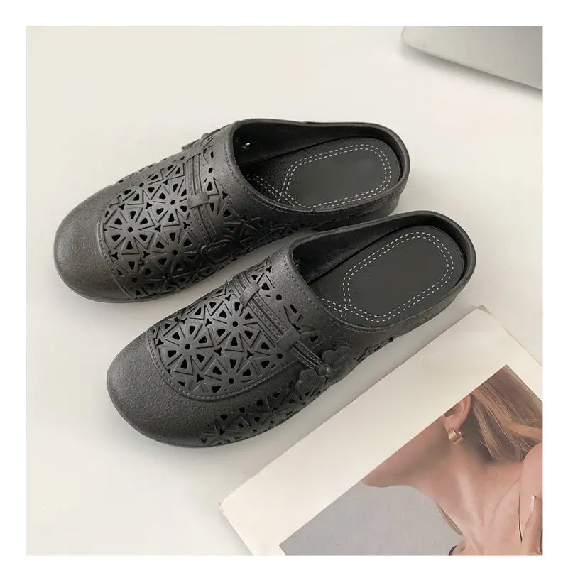 Csomag tartalma: 1*Retro elegáns, üreges, kerek orrú papucsok