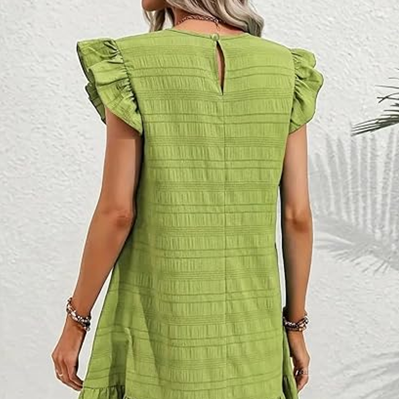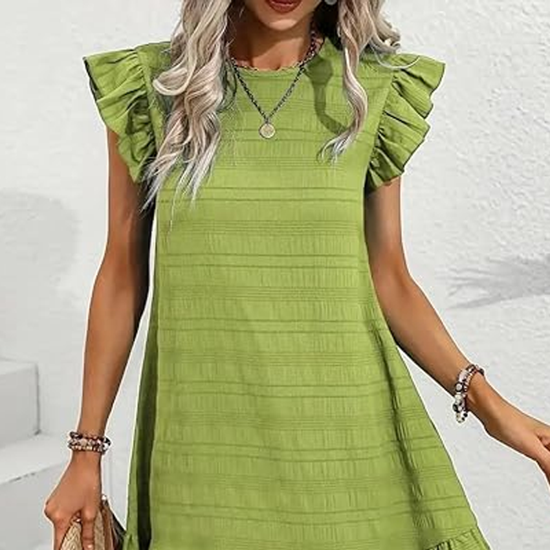 A csomag tartalma: 1 db nĆi fodros szegĂ©lyƱ ujjatlan, kerek nyakĂș ruha