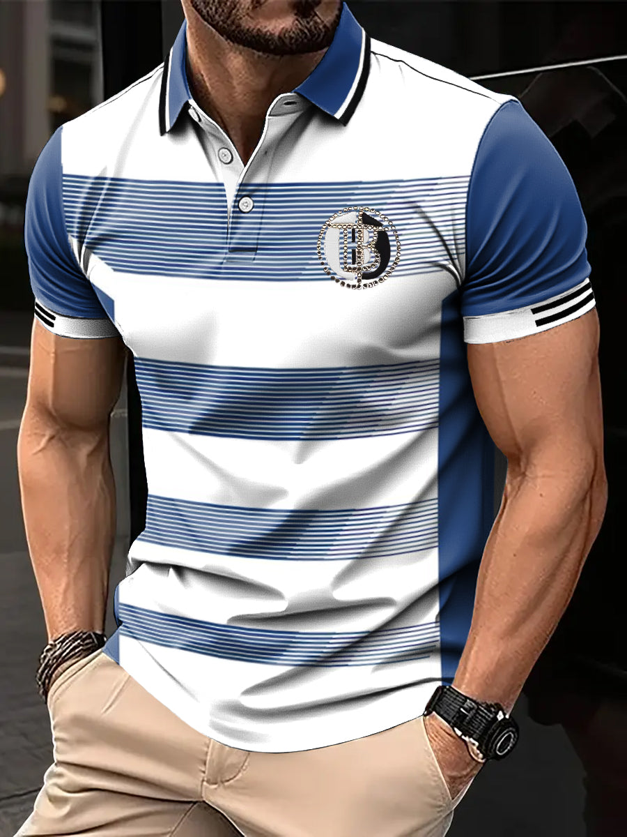 Férfi retro csík színes blokk művészeti nyomtatás alkalmi üzleti póló