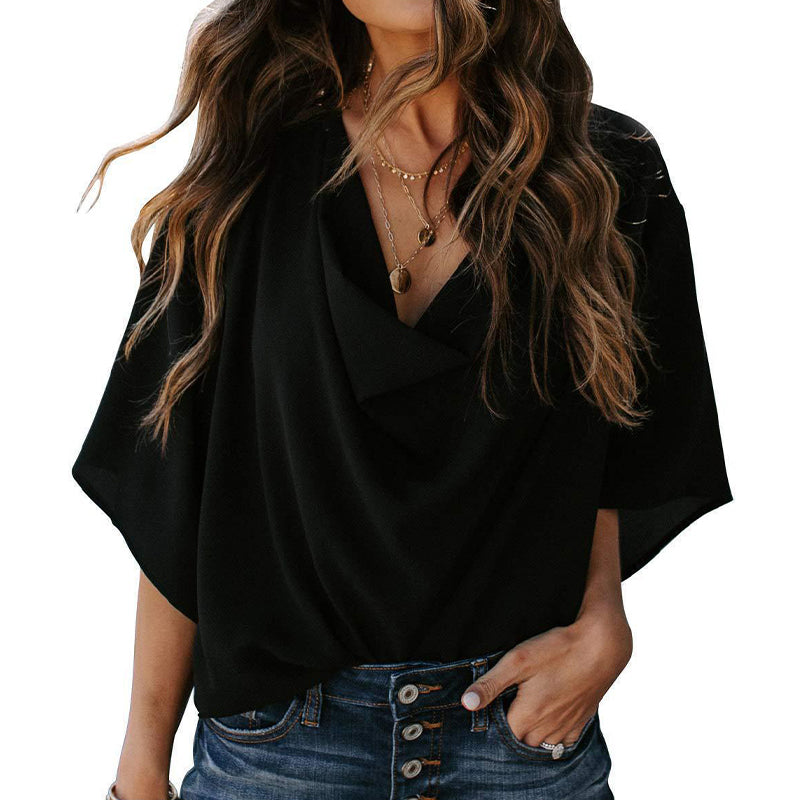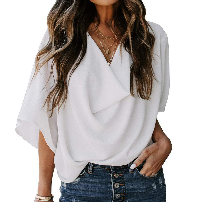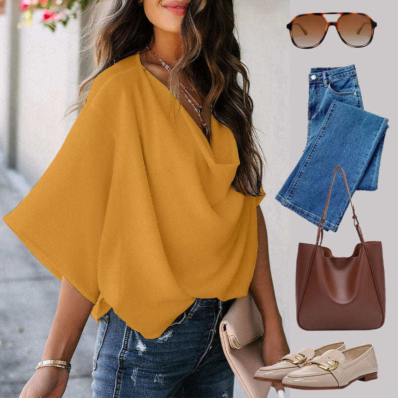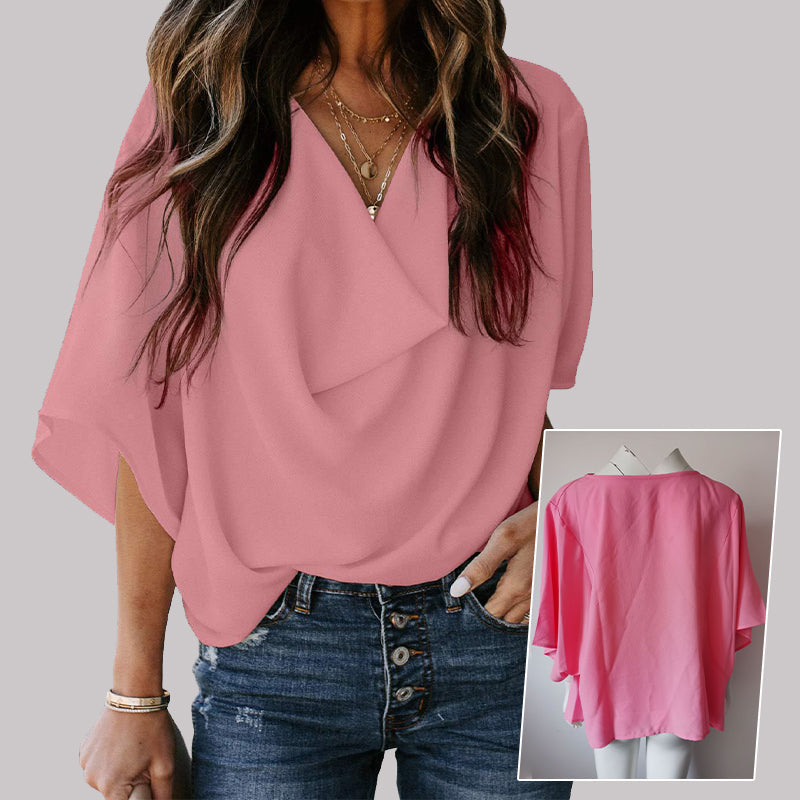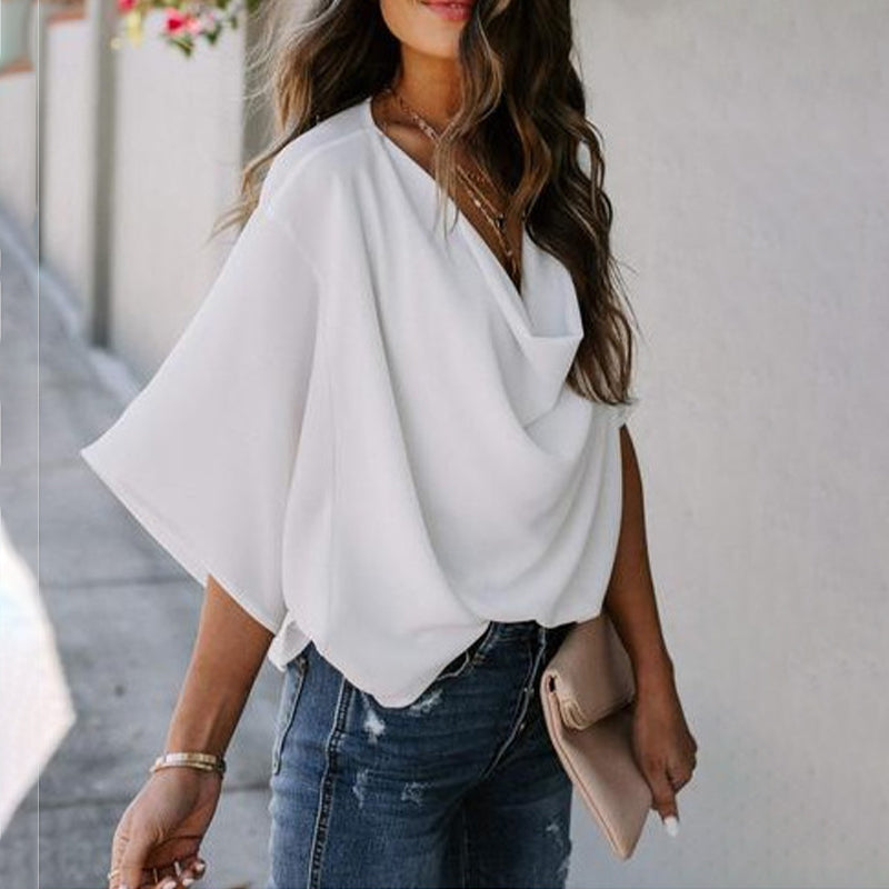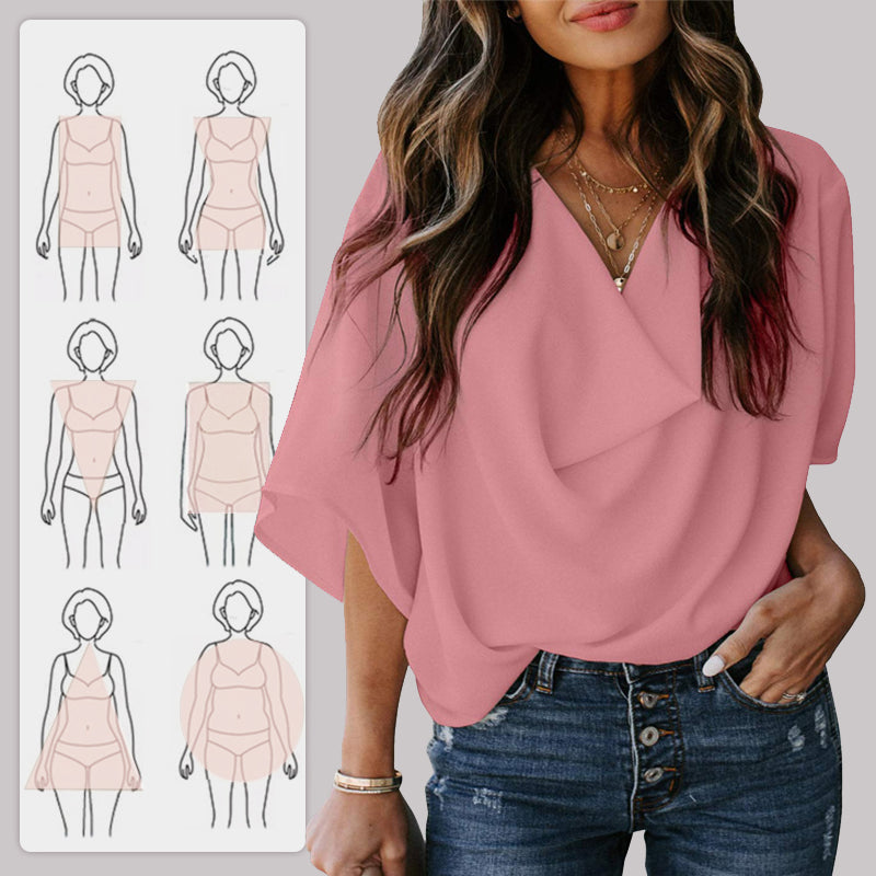IRREGULÁR V-NYAKKIVÁGÁS AZ UNIVERZÁLIS MEGJELENÉSÉRT - A gondosan szögletes nyakkivágás hosszító hatást kelt, miközben szerény fedést biztosít. Ez az időtlen dizájnelem minden arcformát kiegészít, és gyönyörűen működik réteges nyakláncokkal vagy statement medálokkal a személyre szabott stílushoz.