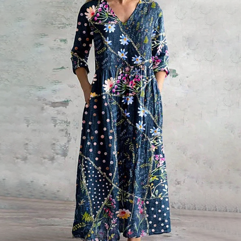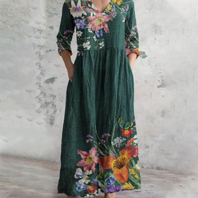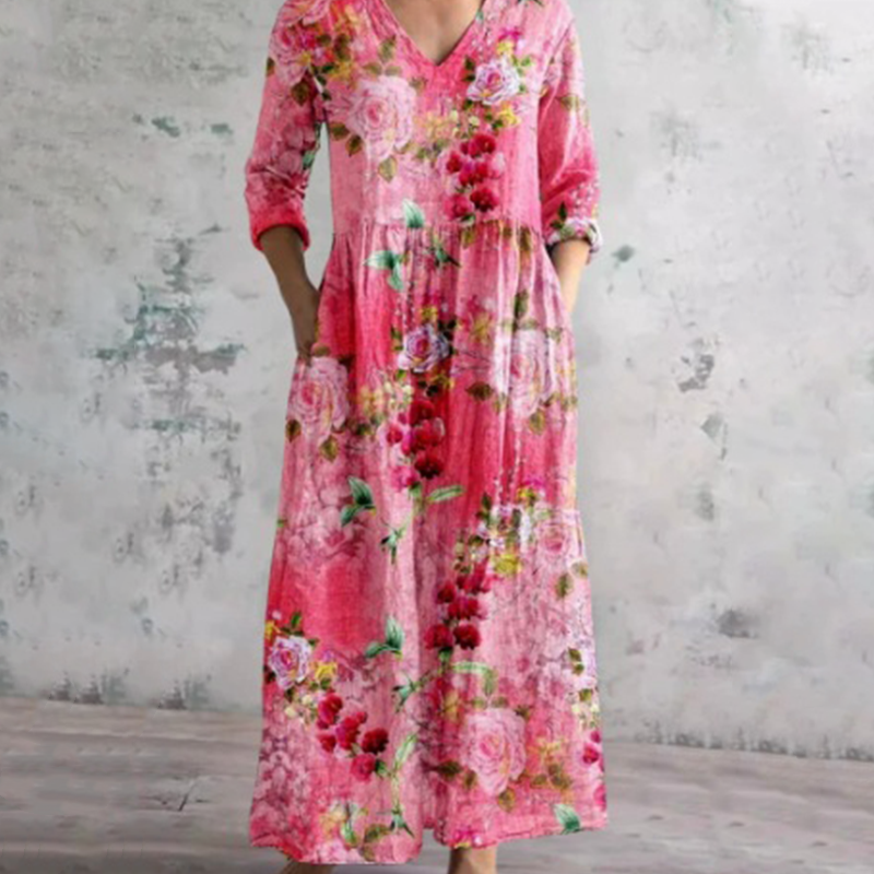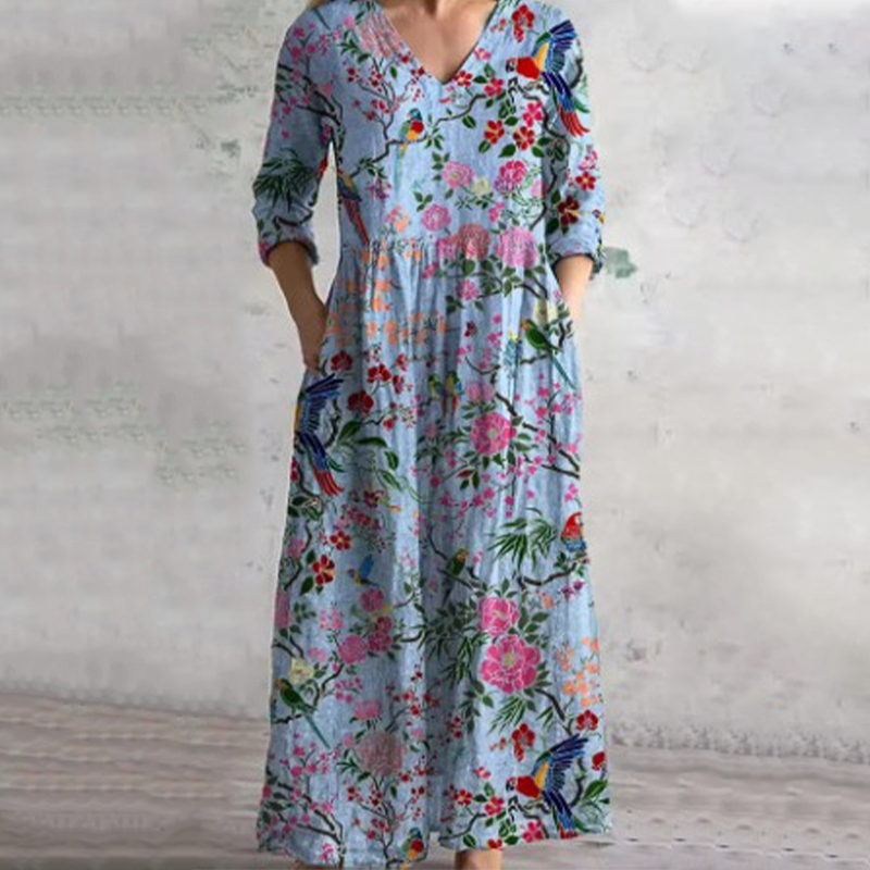 A csomag tartalma: 1×elegáns virágos V-nyakú ruha