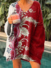 Női vintage virág művészet nyomtatás v-nyak pulóver
