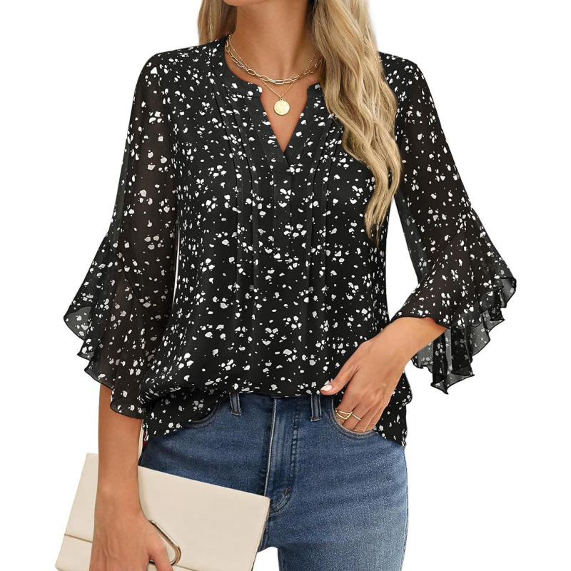 KEVERES CHIFFON SZŐNYEG: A puha, lélegző sifonból készült blúz kényelmes és légies érzést nyújt, ideális egész napos viselet meleg és hűvös időben egyaránt.