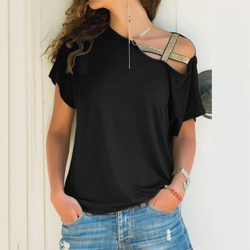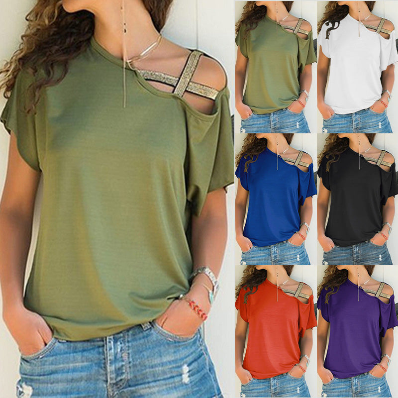Csomag tartalmazza: 1 * Női alkalmi egyvállas keresztpántos rövid ujjú póló
