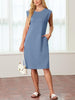 - Középhosszú ruha: kerek nyakkivágás, rövid ujjú, térdig érő.
