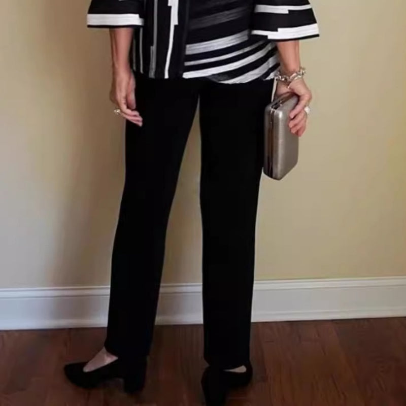 KÉNYELMES NADRÁG - Egész napos könnyedség: Ez a szett úgy készült, hogy Önnel együtt mozogjon. A nadrág laza, mégis testre szabott sziluettje kényelmet nyújt anélkül, hogy feláldozná a struktúrát. Akár az irodába indulsz, akár ügyintézésre indulsz, a nadrág egész nap rugalmas viseletet biztosít.