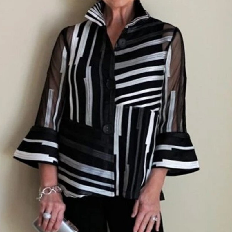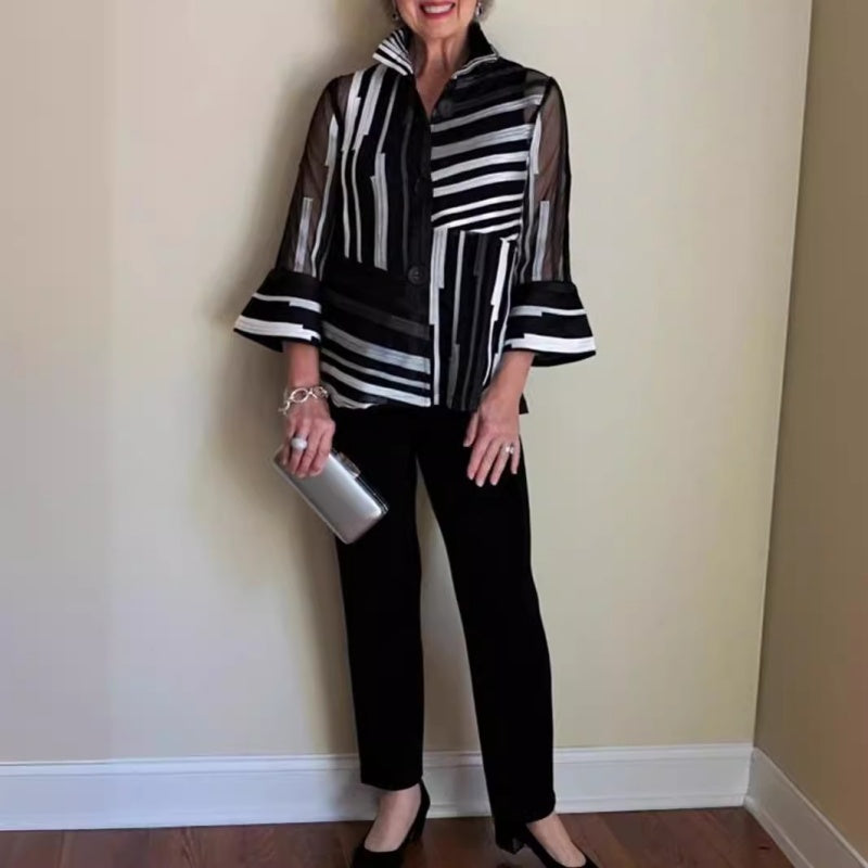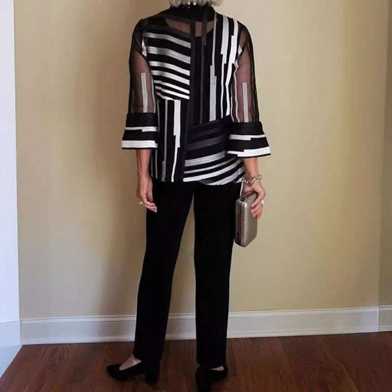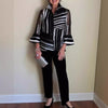FEKETE-FEHÉR SZÍNBLOCK TERVEZÉS - Modern stílus egyszerűvé téve: A fekete és a fehér időtlen kontrasztja ebben a feltűnő colorblock dizájnban egyesül, ami azonnali kifinomultságot kölcsönöz az öltözékednek. Tökéletes a magabiztos smart-casual megjelenéshez, a minta a függőleges és vízszintes blokkokat ötvözi a vizuális egyensúly és az emelkedett stílusérzék érdekében, amely irodába és hétvégére egyaránt alkalmas.