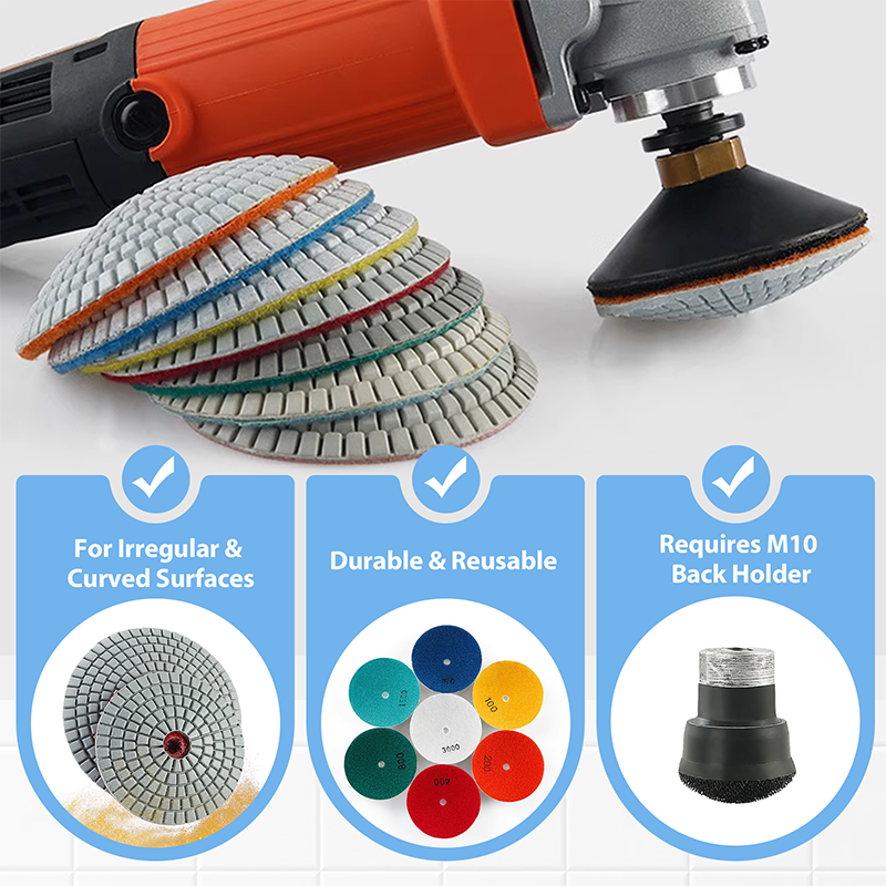 SZÜKSÉGES M10 HÁTTARTÓRA: Ezek a párnák kompatibilisek egy M10-es hátsó tartóval, amely biztosítja a sarokcsiszolóhoz vagy elektromos fúrógéphez való biztonságos rögzítést, stabil és ellenőrzött polírozási élményt nyújtva.