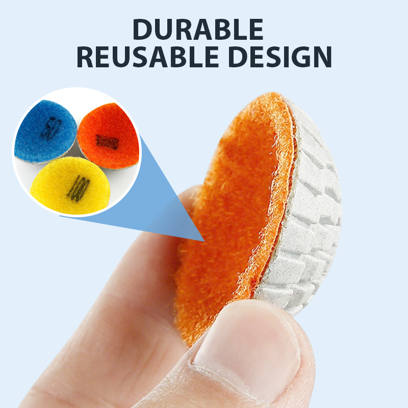 FEJLETT NEDVES GYÉMÁNTTECHNOLÓGIA: Ezek a párnák kiváló minőségű gyémánt szemcsékkel készülnek, hogy kiváló polírozási teljesítményt nyújtsanak olyan kemény felületeken, mint a gránit, a márvány, a beton és a kő. Sima, fényes felületet érhet el minimális erőfeszítéssel.