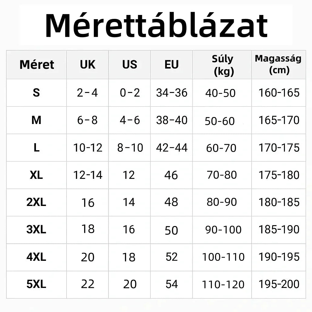 Méret: S, M, L, XL, 2XL, 3XL
